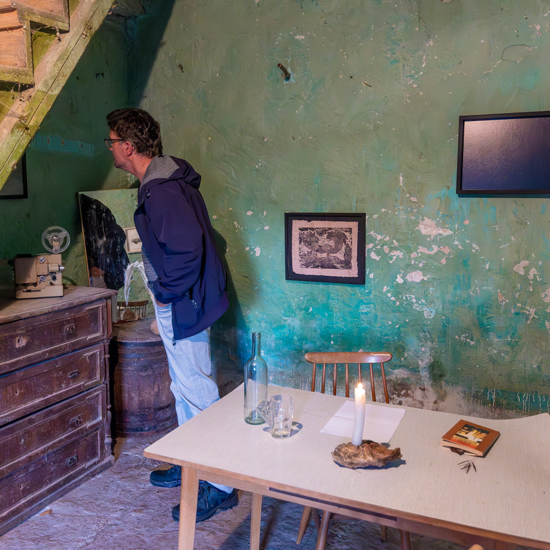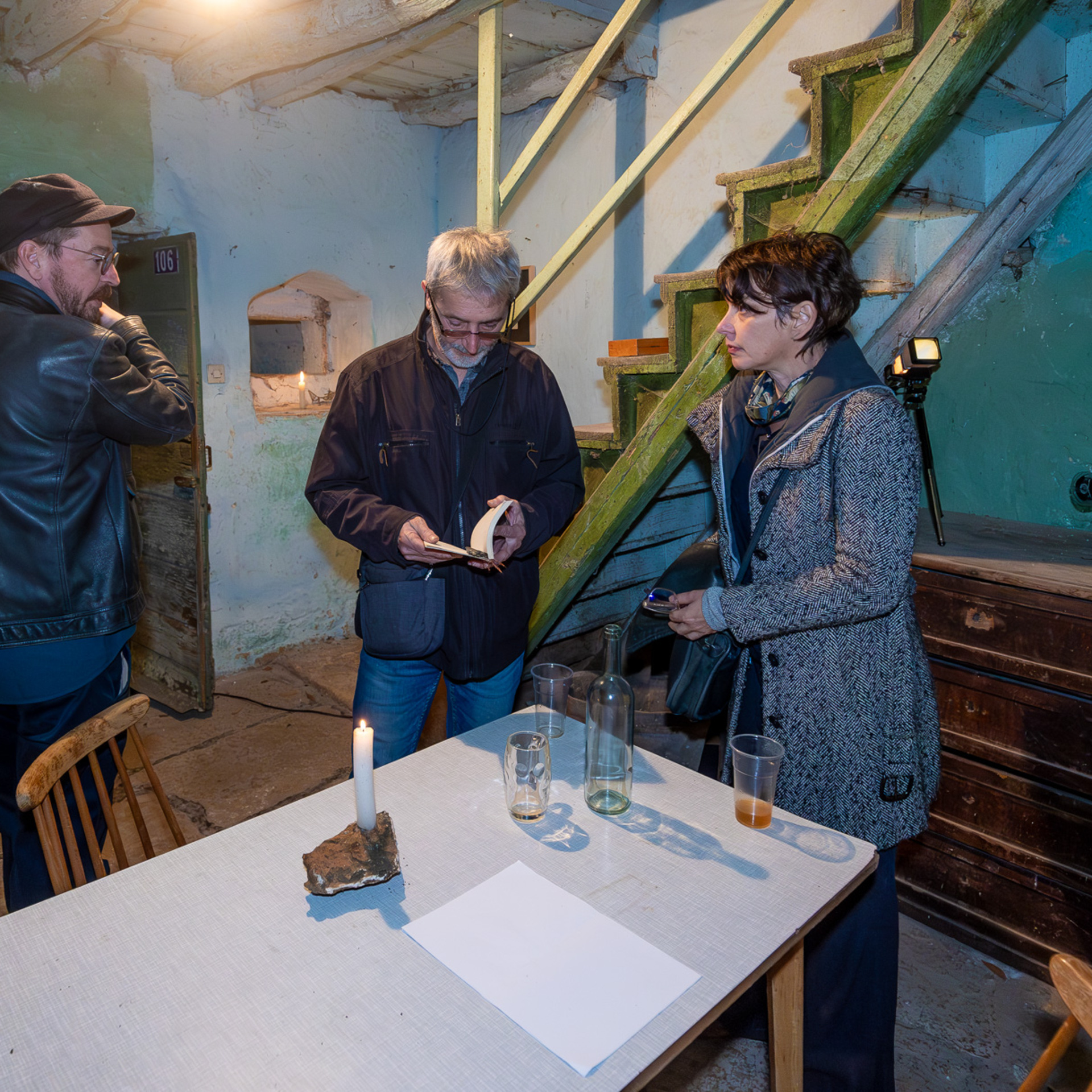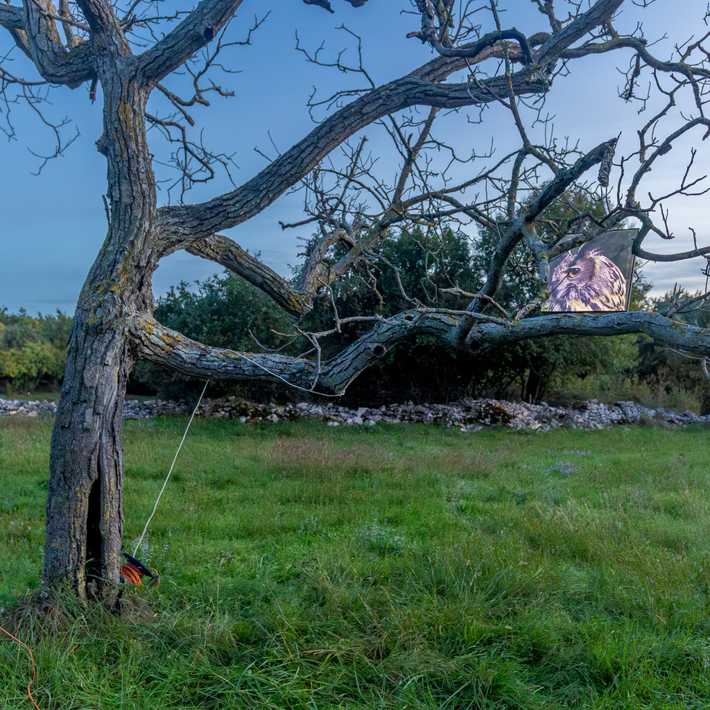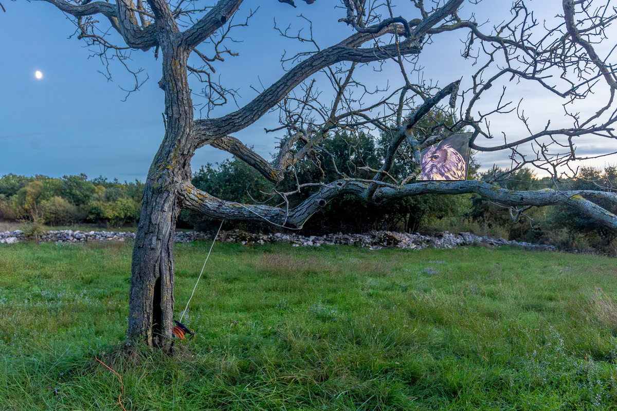Izložba je skica i mjesto početka audiovizualnog eseja o istarskoj zemlji. Zamišljeni bivak čovjeka koji izgovara prve riječi kao prolog filmu.“
