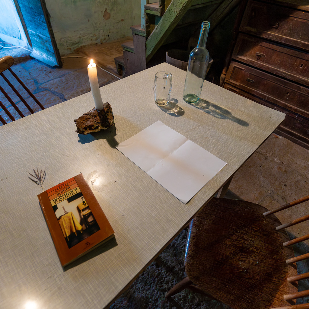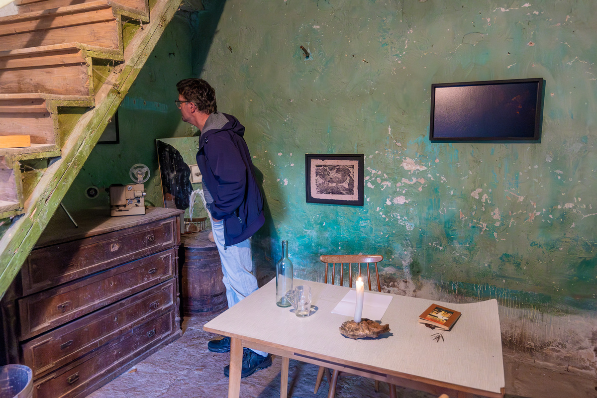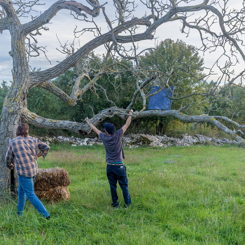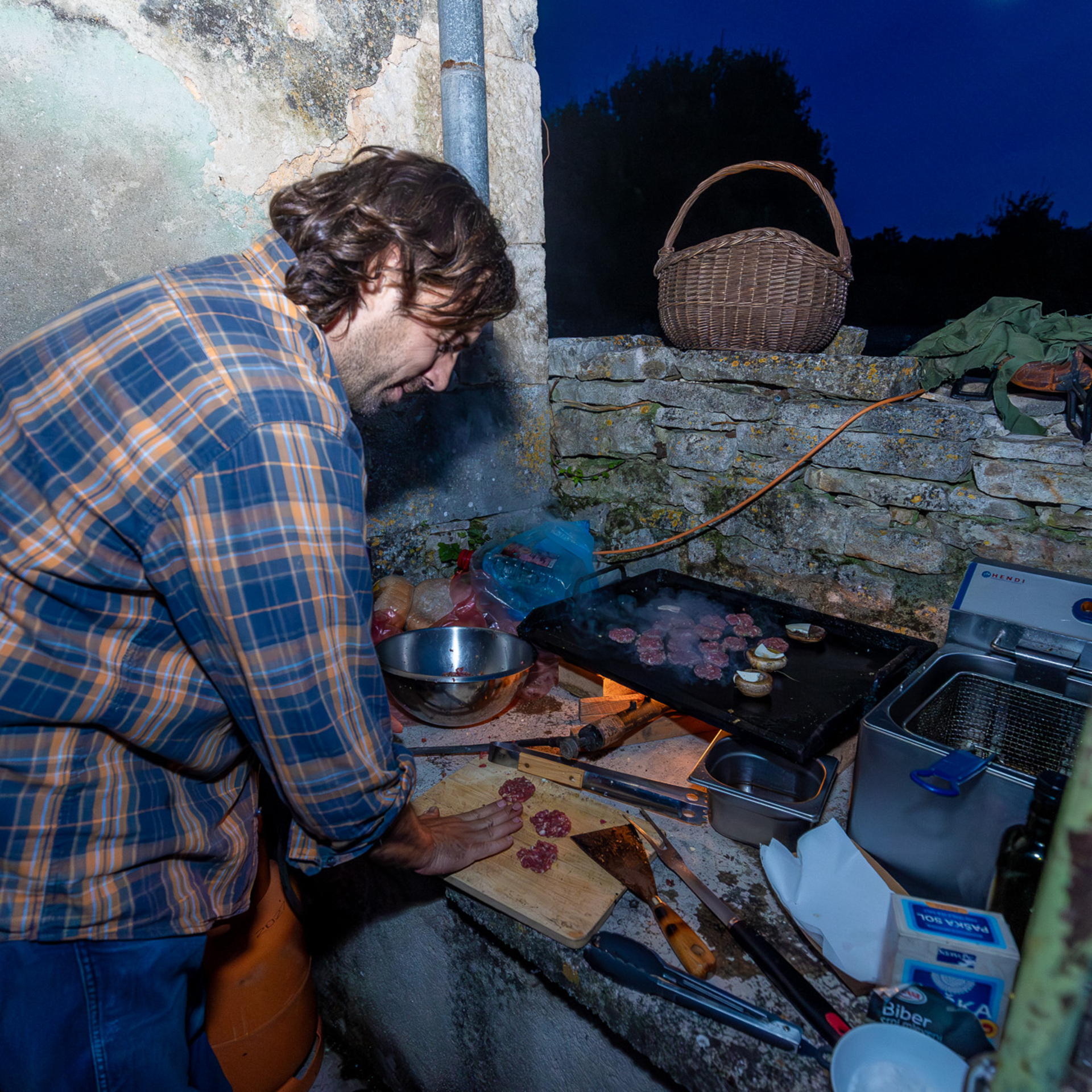 Izložba je skica i mjesto početka audiovizualnog eseja o istarskoj zemlji. Zamišljeni bivak čovjeka koji izgovara prve riječi kao prolog filmu.“