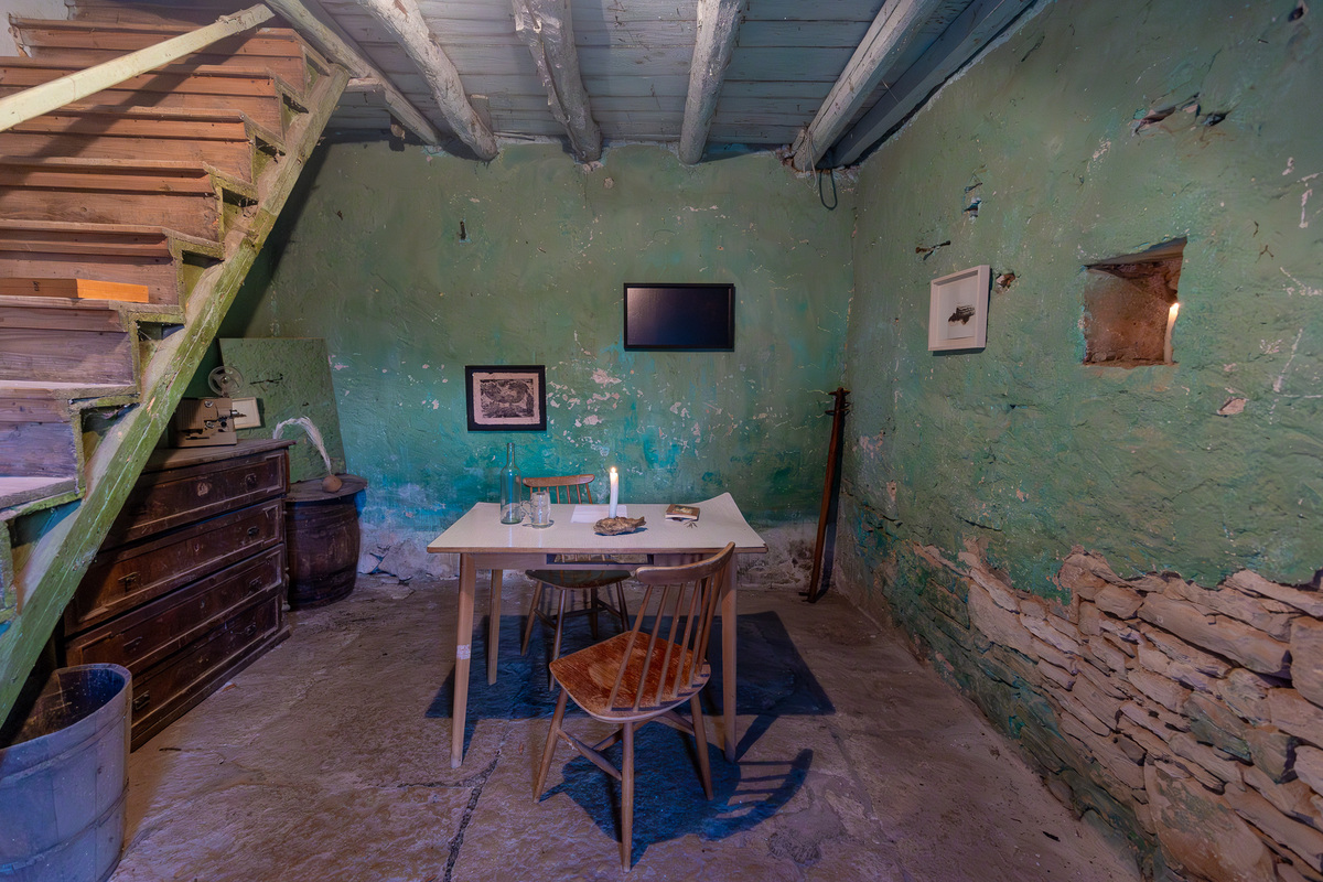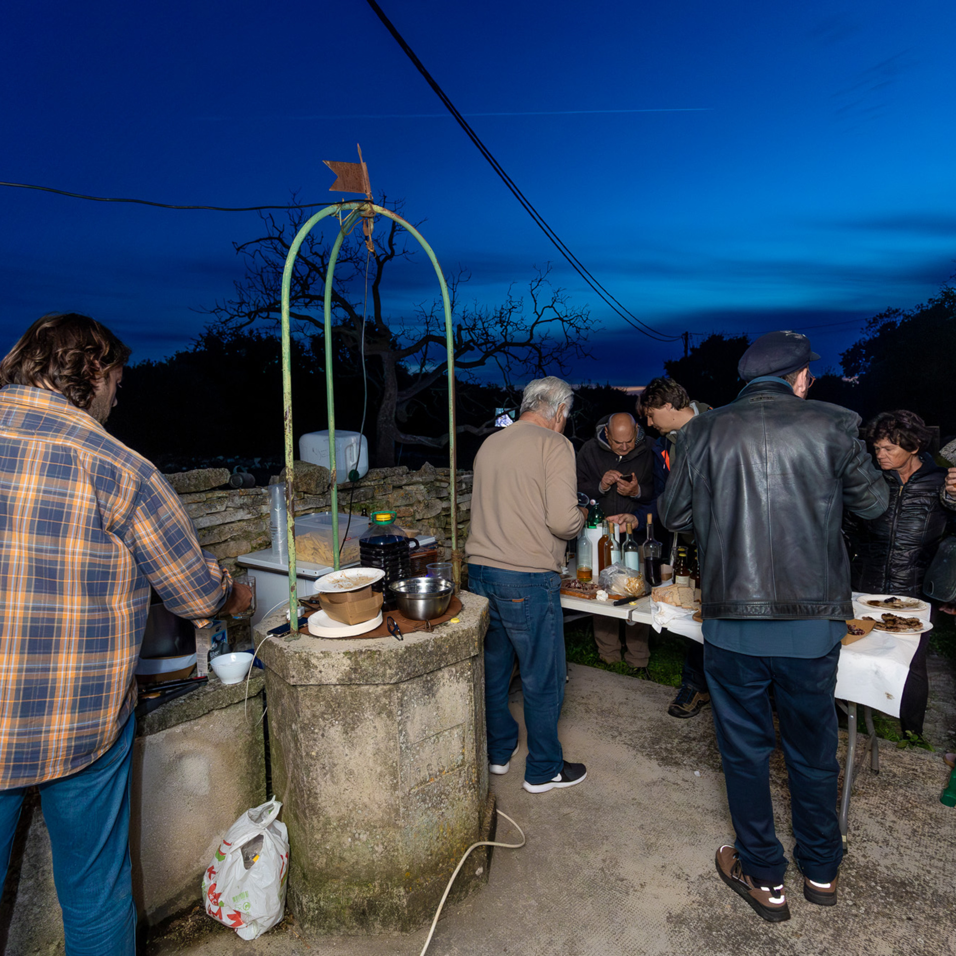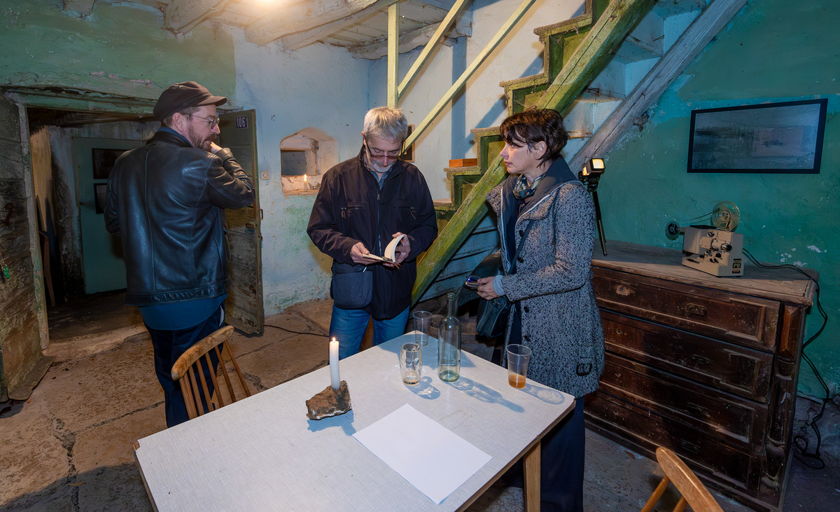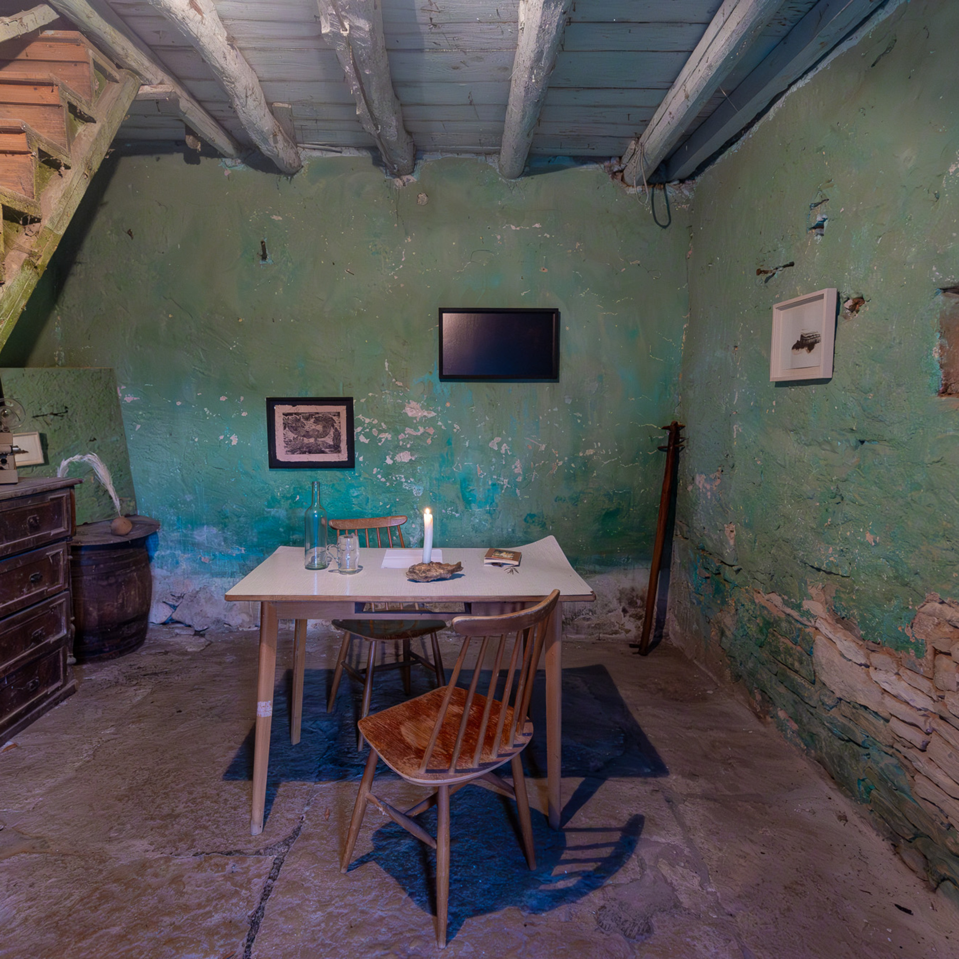 Izložba je skica i mjesto početka audiovizualnog eseja o istarskoj zemlji. Zamišljeni bivak čovjeka koji izgovara prve riječi kao prolog filmu.“